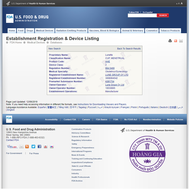 4. TẠI VIỆT NAM, CÔNG TY TNHH MTV THƯƠNG MẠI VÀ DỊCH VỤ HOÀNG GIA LÀ NHÀ NHẬP KHẨU VÀ PHÂN PHỐI ĐỘC QUYỀN CÁC SẢN PHẨM CỐC NGUYỆT SAN LUNETTE PHẦN LAN CHÍNH HÃNG TẠI VIỆT NAM TỪ NĂM 2016
