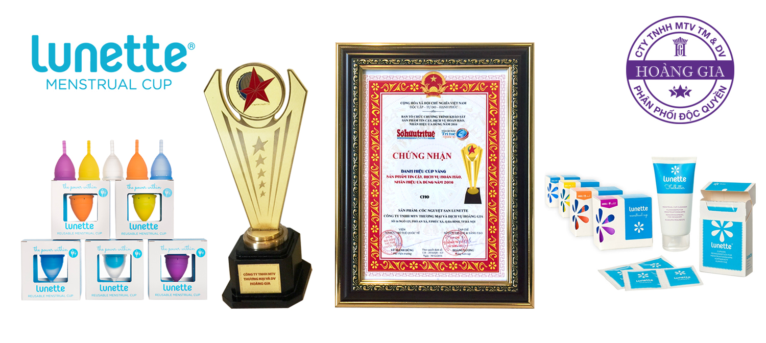 Các sản phẩm cốc nguyệt san Lunette do Công ty Hoàng Gia phân phối tại Việt Nam đã nhận được sự tin tưởng và đánh giá tốt của rất nhiều khách hàng nữ tại Việt Nam và được Đại diện Lãnh đạo Bộ Khoa học Công nghệ; Lãnh đạo Hội Sở hữu trí tuệ Việt Nam trao tặng cup vàng và chứng nhận "Sản phẩm tin cậy - Dịch vụ hoàn hảo - Nhãn hiệu ưa dùng năm 2016" tại Nhà hát Âu Cơ, thành phố Hà Nội.